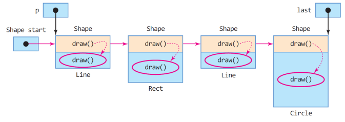 - 예를 들어, 같은 draw()라는 이름의 메소드도 Circle 클래스의 draw()는 원을 그리고 Rect 클래스의 draw()는 사각형 그린다.