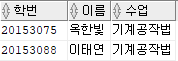 3. 기계공작법 수업을 듣는 학생의 학번, 이름, 수업 출력