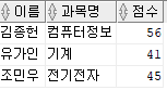 2. 학생 학번, 이름, 과목명, 점수 출력