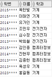 SELECT RPAD(SUBSTR(STU_NO, 1,4),8,'*') AS 학번, STU_NAME AS 이름, STU_DEPT AS 학과
