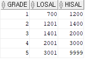 INNER JOIN EMP E ON E.SAL BETWEEN S.LOSAL AND S.HISAL