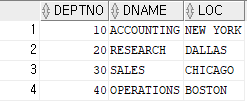 ▷ DEPT 테이블의 전체 내용을 출력한 결과