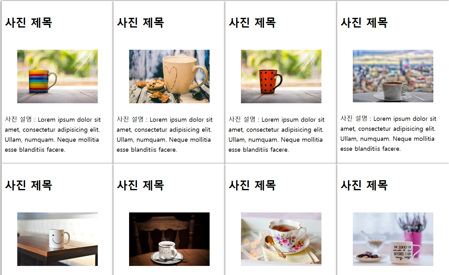 <p>사진 설명 : Lorem ipsum dolor sit amet, consectetur adipisicing elit. Ullam, numquam. Neque mollitia esse blanditiis facere.</p>