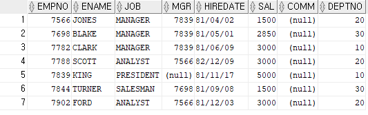 WHERE DEPTNO IN (20);