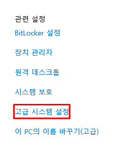 ▶ 속성 -> 고급 시스템 설정 -> 고급 -> 환경 변수