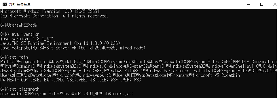 ▶ jdk-8u40-windows-x64.exe 다운로드 : https://www.oracle.com/java/technologies/downloads/#java8