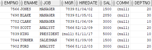 WHERE DEPTNO IN (20);